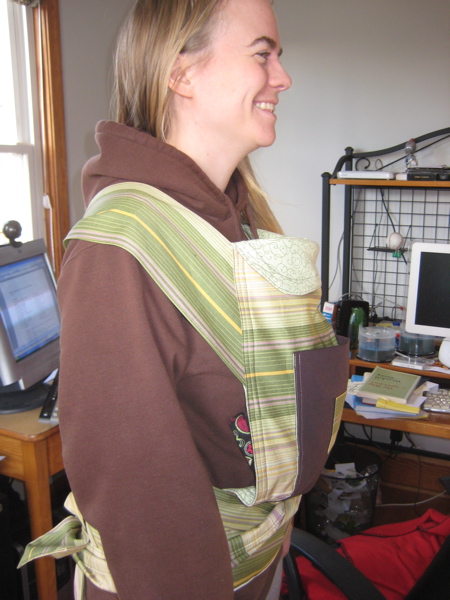 I’m happy to report that now that Grace is a little bit bigger, Rachel says that the mei tai wears well and is easy to use. So I’m looking forward to making one for our baby!