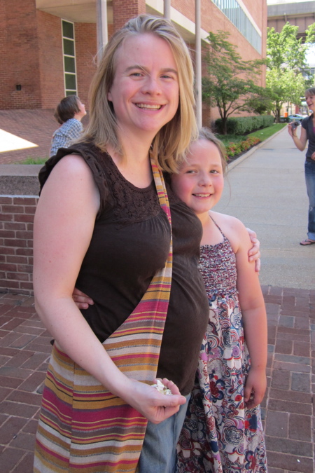 Here’s a picture of the super-tall and grown-up Selah and me, which accomplishes two purposes – one, proof they’re actually here and two, finally a picture of how big my belly is getting! (And for any Sleepless in Seattle fans, this picture is taken in front of the Baltimore Sun building where Meg Ryan’s character worked and the building that you see her walking out of in the movie.)
