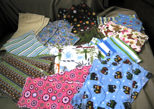 Towards the end of June, I needed a no-thought sewing project. So I used my flannel scraps and made 51 cloth diaper wipes. Some of you may recognize some of the flannels! I think I probably have enough to go with whatever cloth diapers we end up buying!