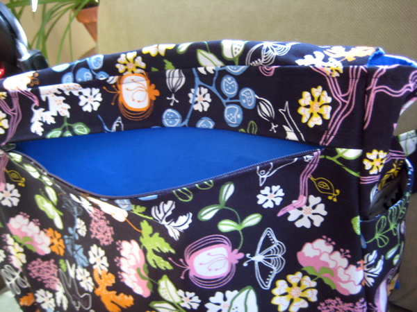IKEA has fabulous fabrics that you can buy by the yard and many of them are home dec (i.e. heavier) weight fabric, perfect for projects like this. So we both have IKEA fabric bags. (And yes, the lining is the same on both bags.)