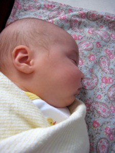 And on a related note (related to Ellie that is), it is amazing how much more laundry I’m doing these days. And she can’t even run around and get her clothes dirty yet! It’s just that she’s acquired this habit of spitting up (really spewing) what seems to be gallons at a time, all over both of us and sometimes the bed or the couch. Our pediatrician says it’s mostly likely just an immature sphincter at the bottom of her esophagus and it will mature anywere between 6 and 12 months. We’re hoping for SIX.