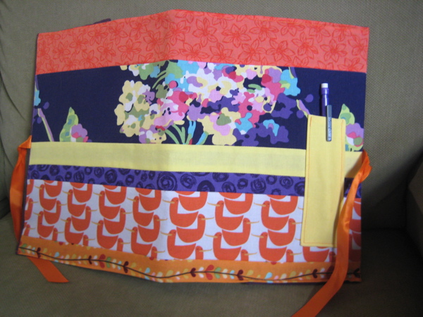 For Selah, because I heard that she liked to write, I made her a journal/composition book cover, using this tutorial. I made a couple changes – I used ribbon to tie it closed instead of the button/hair tie and I added a pocket on the front to put a pencil in. I remember being very excited to have a journal with an attached pen when I was about Selah’s age so I figured she would like that!