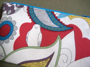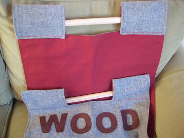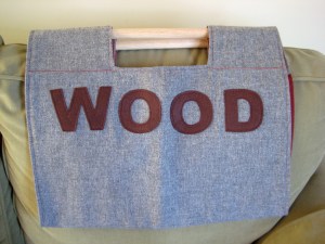 For Nik’s brother and sister-in-law, I made a wood-carrying tote and a gathered clutch purse. I added the words in wool felt, in case Andreas forgot what it was for! 🙂 I also especially love how I was able to cut the fabric so the bird is in the middle of the back of the clutch. These were both really fun projects.