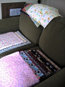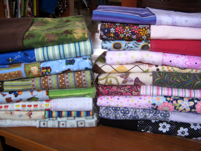 I hope the moms and babies will be blessed by having a nice warm blanket.  We use our homemade blankets all the time and I don’t know what we’d do without them.   I also feel remarkably lighter not having all that flannel hanging over my head.  A win-win for everyone!