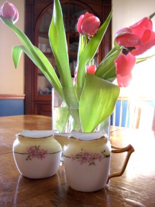 How could I have forgotten these? When I blogged about my inheritance from Papa and Granny, I forgot to include this beautiful sugar and creamer set, which Granny gave to Mom and Mom gave to me, when Nik and I got married.