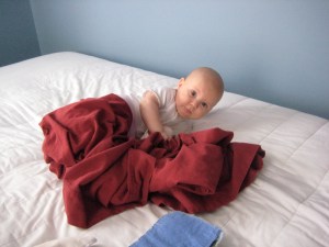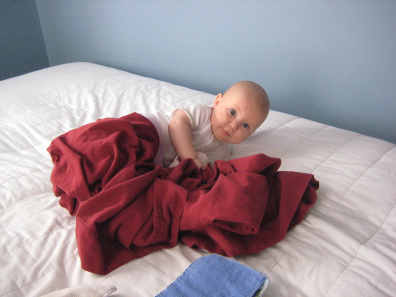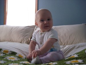 (That’s not her in the act of falling; that’s her holding her head up because she wants to be sitting up. She has a very strong neck!)