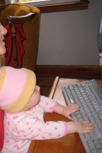 (I promise. This was not staged. She just did it on her own. Scary. I (meaning Laura) must spend a little too much time on the computer! Definitely not Nik’s fault!)