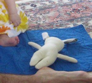 And the bunny in action (with Nik’s and Ellie’s feet for scale)