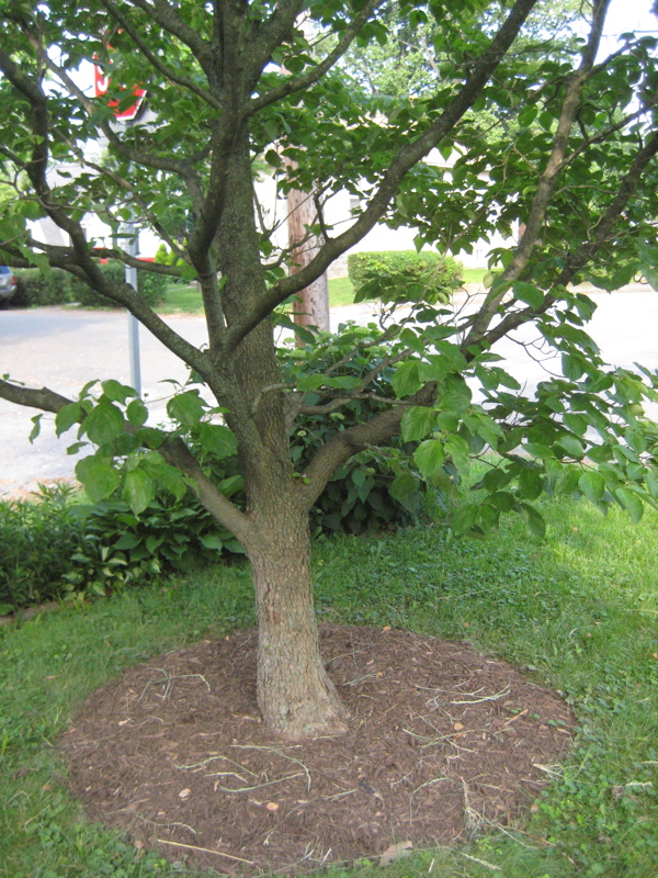 You can see the mulch circle of the dogwood in the top right hand corner.