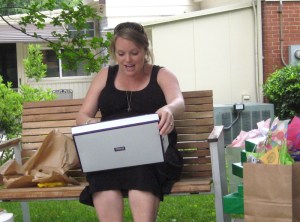 14. We have a fun baby shower for Steph. Steph opens the present and is very surprised and excited!