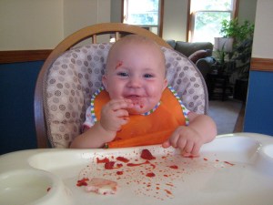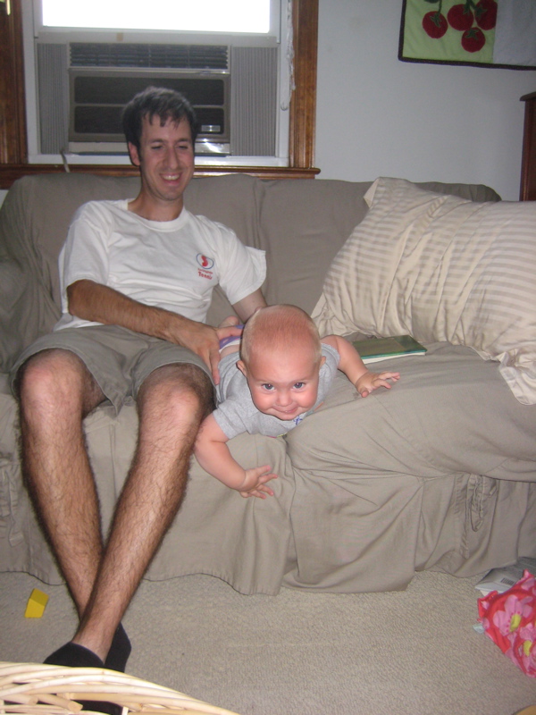 This precious little girl just doesn’t sit still anymore. Here she is attempting to dive off the couch. And notice that now she’s a blondie – just like her mama!