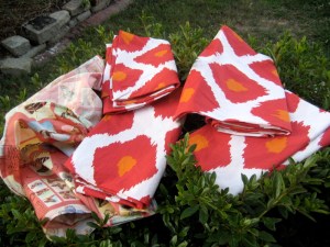 I do have to send out thanks to my friend Betsy who gave me a huge roll of that butterfly fabric which she had found in the basement of her old house. I don’t love it nor do I really even like it but having a bunch of free fabric has come in really handy to use on prosaic projects like this. Thanks Betsy! I’ve almost used it up.
