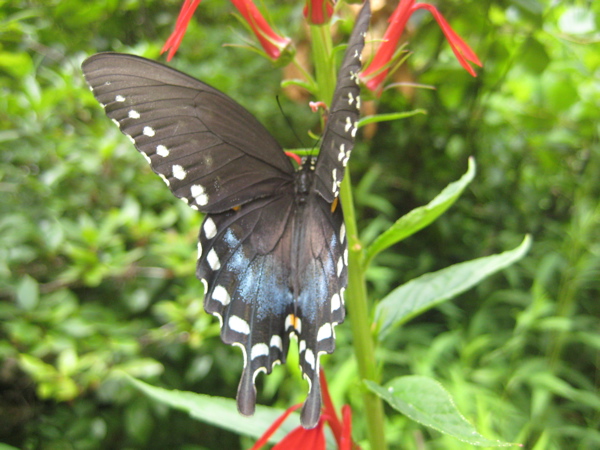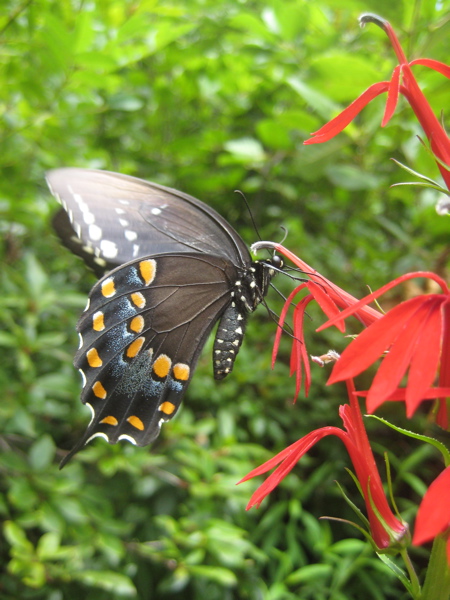 I’m think is could be a spicebush swallowtail, but Caleb can verify that tomorrow! He started a butterfly and moth club with the three neighbor kids. Now everyone is running around with nets and butterfly books identifying everything! We let most go at night and just keep the new ones. He probably has at least seventy different types of moths, butterflies, and skippers on “the board”. I will have to post a picture of it on facebook. It is really incredible.