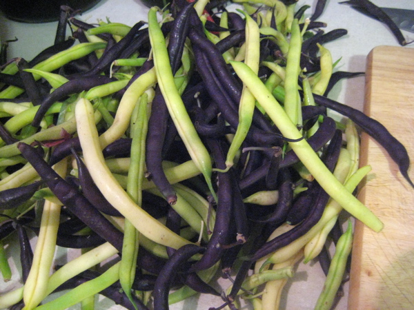 This year, we grew yellow wax beans and a variety of purple bean that turns green when you cook it. Both are bush beans but I think next year, we’re going to grow pole beans in an attempt to get more beans out of a small plot.