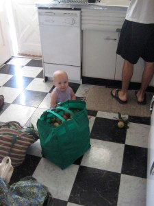 That green bag has almost 30 pounds of apples in it!