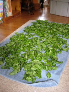 basil, drying, waiting to be turned into green gold