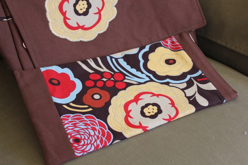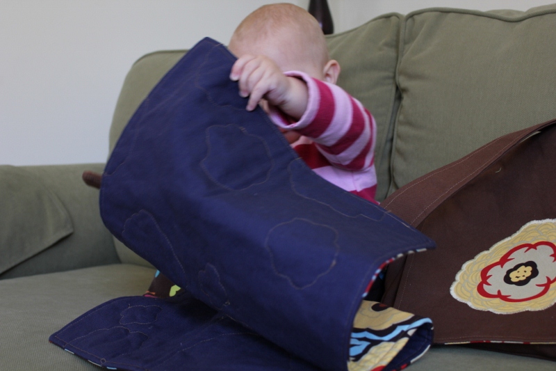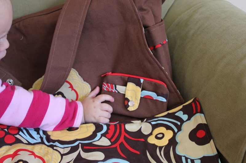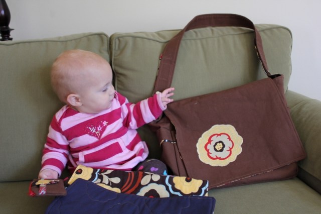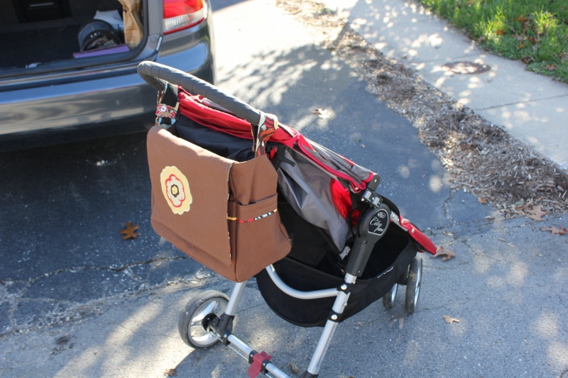 Baby Maria arrived a couple months ago and Ellie and I decided to welcome her to this world with a diaper bag (surprise, surprise).  I’m becoming quite a pro at diaper bags.  Maria is my third new niece in 7 months! Jon and Leah requested a bag that they could both use and also wanted to use the bag on a stroller.  So I modified the bag that I’ve made twice before (for us and for Meggan) and came up with this one.  I’m really pleased with how it turned out.