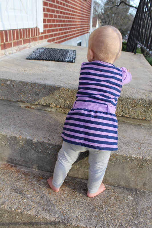 Later that day, we were enjoying a gorgeously warm day outside. I was doing a little yardwork and Ellie decided that climbing stairs was so much fun, she wanted to climb concrete stairs! (All pictures taken by Nik.)