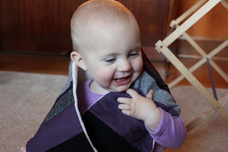 Making this scarf is how I learned how to do foundation piecing (knowledge that I promptly put to use in Ellie and Luke’s color books). This scarf was really fun to make because I didn’t have to worry about cutting straight lines. So I just chopped pieces with my scissors and had fun!