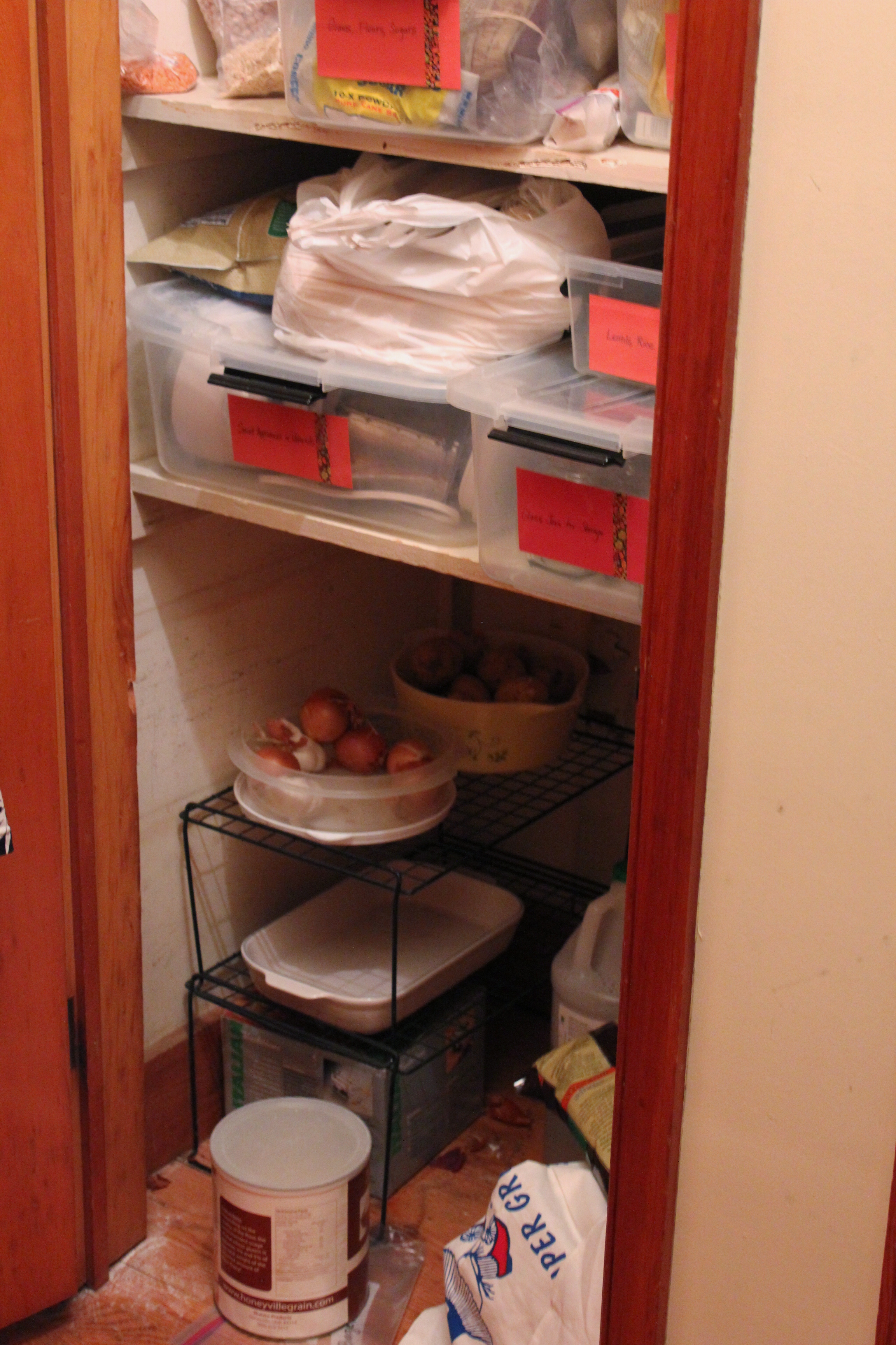 Since I took those pictures, I’ve managed to pull out almost everything. Then I’m going clean the shelves, inventory what I have, and put it all back in. I’ll post a picture later to show you my progress!