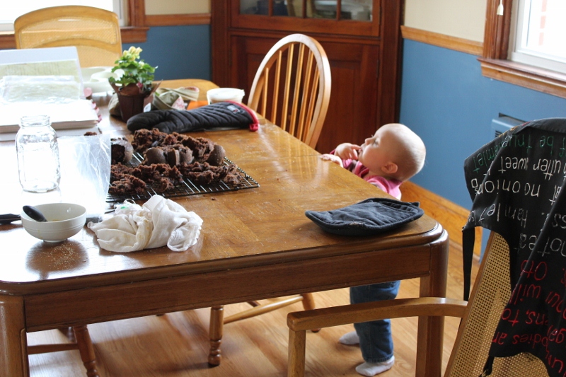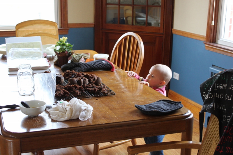 She was quite curious about what that brown stuff was on the table so I pushed a few crumbs her way.  Then I moved the cooling rack to the middle of the table so she wouldn’t eat it all.