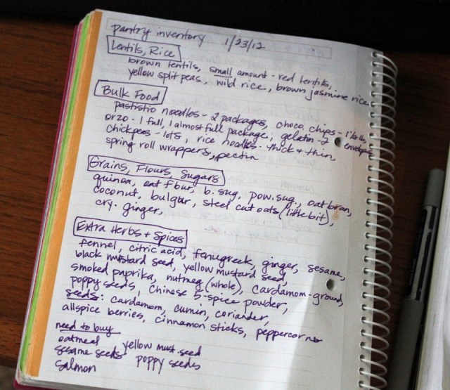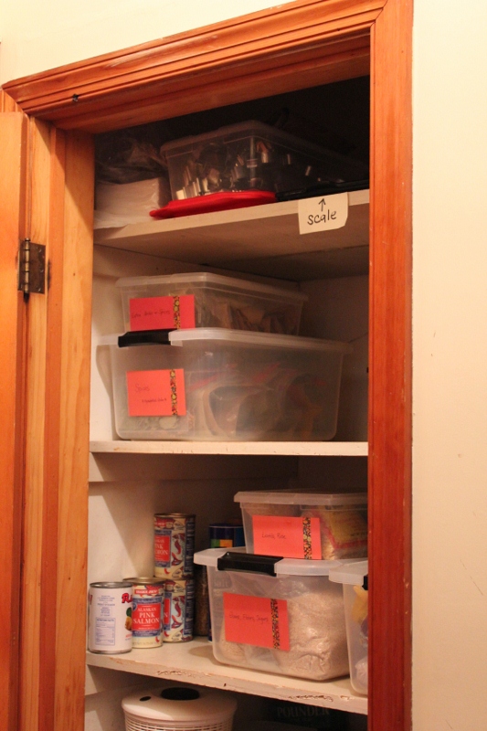And proof that I even took inventory! Ellie was quite useful at this point – as I took down each bin, she quite industriously pulled everything out and then threw everything back in, while I wrote frantically trying not to miss anything! 🙂