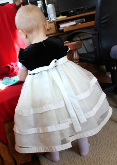 Proof that she’s still a baby -I tied one nice bow, it fell out and after that, she wouldn’t stay still long enough for me to tie another proper one.
