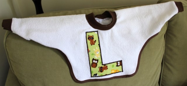 This past weekend I sewed a bib for a birthday boy, one of Ellie’s little friends. His mom provided the fabric and pattern, I provided the labor, and together, we came up with a pretty cute little bib for him to wear when he ate his birthday cake!