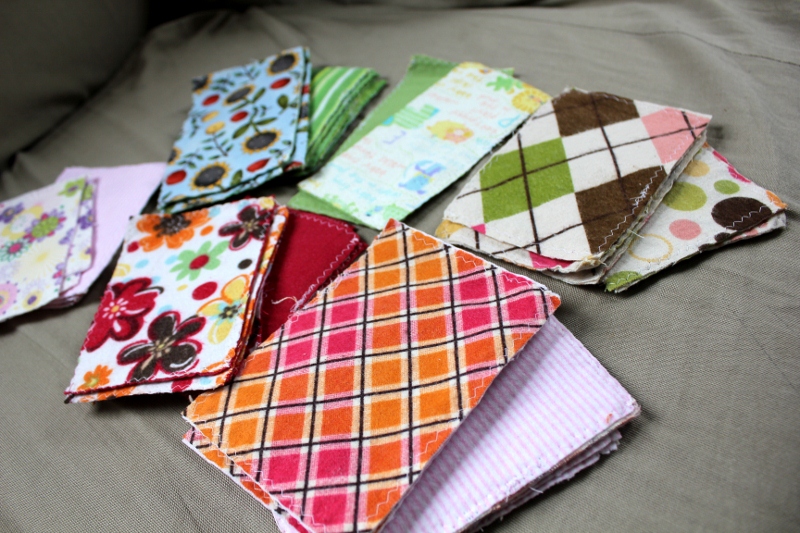 I have a couple friends who are cloth diapering their babies so for their shower presents, I used a bunch of flannel scraps (mostly from this project) to make them cloth wipes!