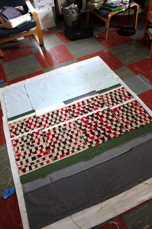 the back of the banner and proof that the bricks are made from many tiny pieces of fabric (and not a patterned fabric!)