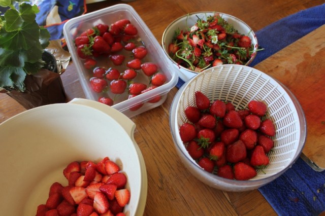 I’m never quite ready for the food preserving season to start again but spring comes relentlessly, ready or not!  Strawberry season is here and last Friday, Nik took a day off from work so that we could go strawberry picking!