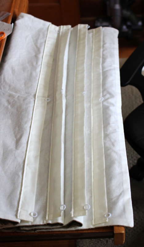 OK, they will eventually. I have one entirely (well, almost entirely) done! The dowel sleeves are sewn on and the cord rings are hand-sewn on. Now, I just have to motivate myself to hand-sew on about 50 more rings to four more shades. I’m working my way through the Ted Food Matters series while I’m hand-sewing. So I’m learning lots of cool stuff while I’m sewing at least!
