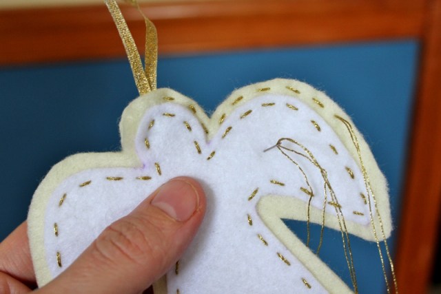 Tie off your thread and you’re finished!  You’ve made a simple, easy, beautiful felt angel that looks perfect from the front and the back.