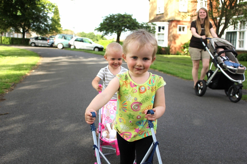 Kaitlyn and Ellie had so much fun playing together.  The good times were certainly enhanced by the fact that there were two doll strollers to play with, meaning no one had to share!  They had so much fun taking walks together around the Oval (which is where Jon and Leah live).