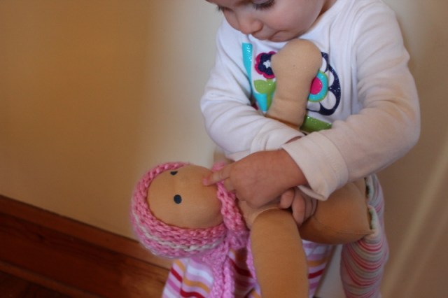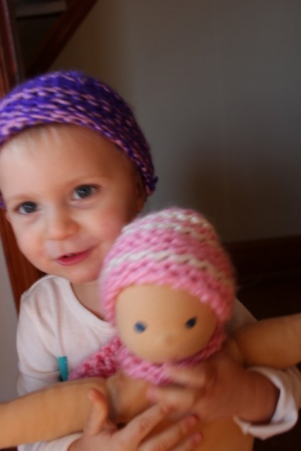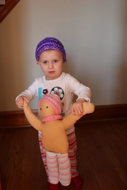 Ellie’s Yiayia knitted her a new hat (which she wears almost constantly now, even inside) and also made a tiny hat and scarf for her baby doll.