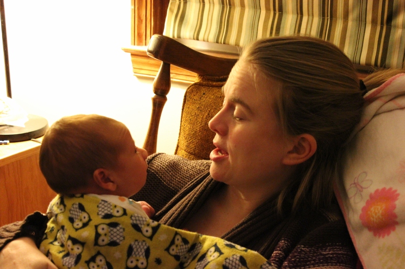 And here’s my disclaimer: Although this post does have a bit of a joking tone to it, dropping out of doing tummy time isn’t something that we’ve taken lightly. We kept careful watch on Ellie, making sure she was meeting her developmental milestones (at her own pace clearly but still growing and changing) and also tried to keep tabs on the shape of her head. So we didn’t say, “Tummy time – whatev, it doesn’t matter” without any thought to the matter. We’ll take the same approach with Mark. He’s definitely doing fine now – already stiffening his legs, standing up on my lap, lifting his head and looking all around. We wear or hold him the majority of the time. So we’re not worried about him and tummy time doesn’t seem necessary at this time. We’ll reevaluate our decision if we have to. I would expect that every parent would do his or her own research and make the best decision for his/her own baby.