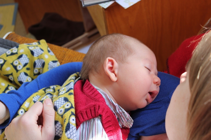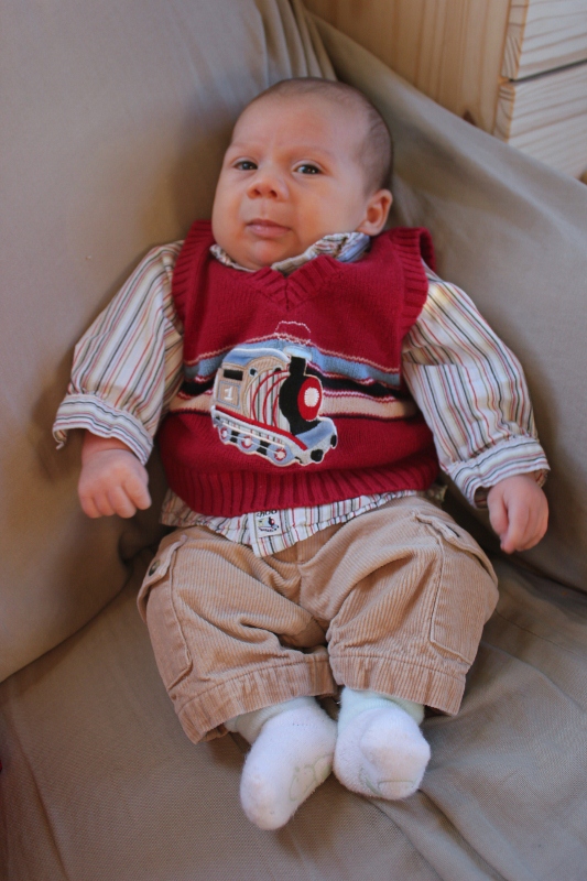 Mark is very lucky to be the recipient of lots of great clothes from his cousins. We decided to bust out some cute ones for his first trip to church.