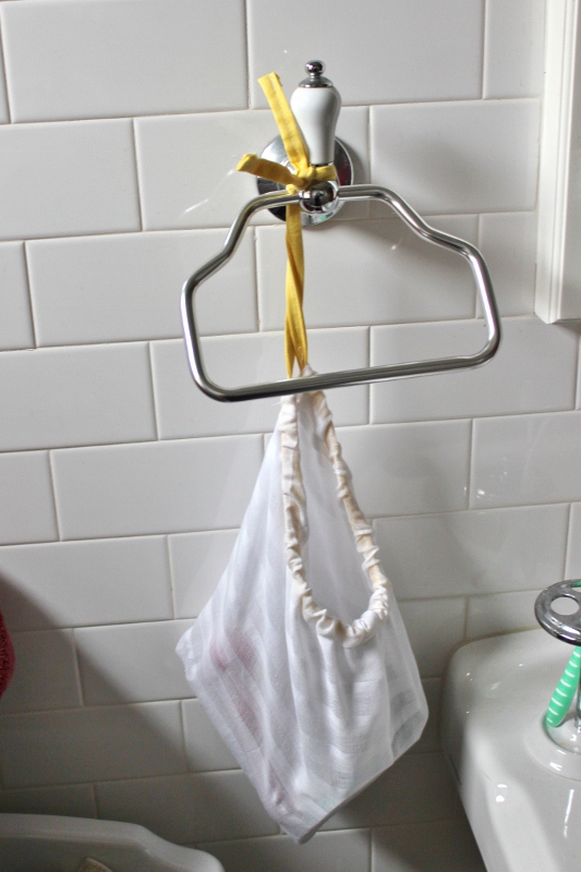 I like how the yellow drawstring pulls in the yellow from our curtain. If we ever repaint our bathroom, I think I’d like it to be yellow!