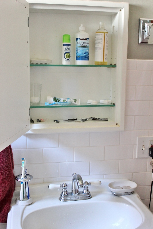 Now, 5 1/2 years after I started finding light spots on our towels, here’s all that we have in our medicine cabinet and sink now: