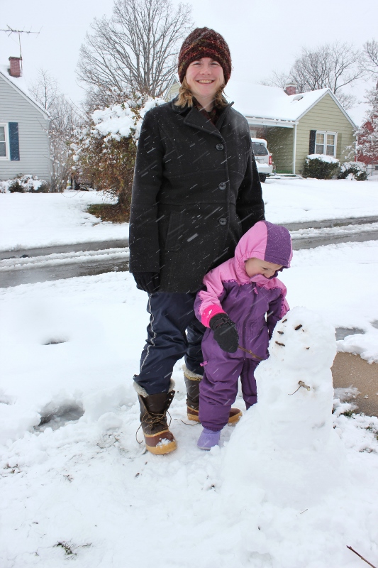 This was Ellie’s first time really playing in snow because last winter was a total bust. (Technically, this winter was pretty much a bust too because we got our first real snow in the springtime.) Hurray for her first snowman!