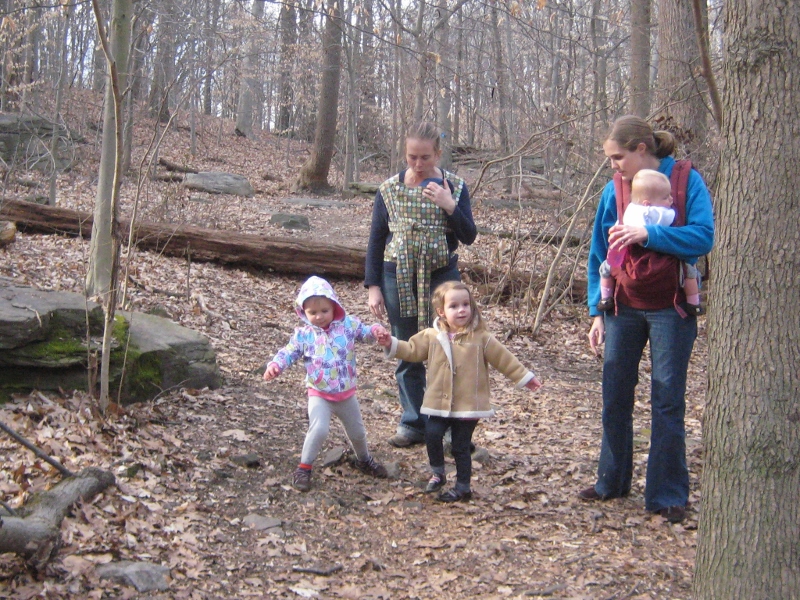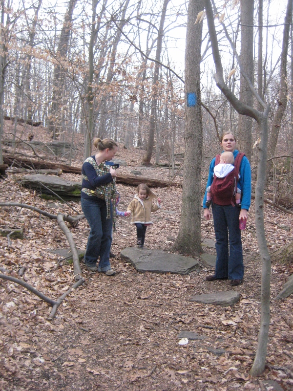 We’ve made it to Double Rock the past two weeks in a row!  Ellie really looks forward to going to throw rocks now so I think it’s turning into a family tradition.  Two weeks ago, some friends joined us, which made it much more fun and also made “baby wearing while stream crossing” a little less intimidating.  That trip, we had three adults, two two-year-olds, and three babies.  (Our third friend wisely volunteered to take the pictures so she avoided being in one! :))