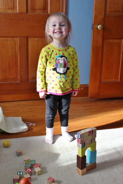 Building (and crashing) towers is a very popular activity around here.  It’s fun to see Ellie’s fine-motor, eye-hand coordination developing.