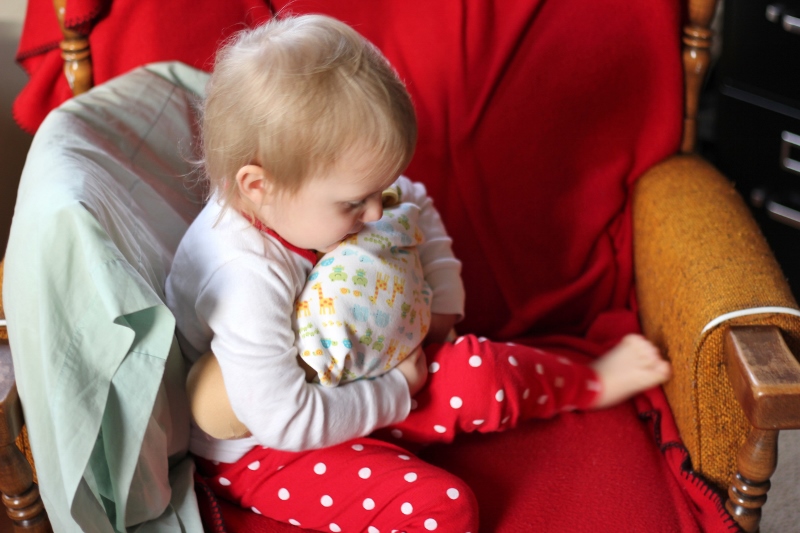 The other day, Ellie swaddled her baby and climbed into our rocking chair to nurse her.  I walked in after she had already started and was delighted to see the peace and calm radiating from her.  I hope I look that way when I’m nursing Mark.