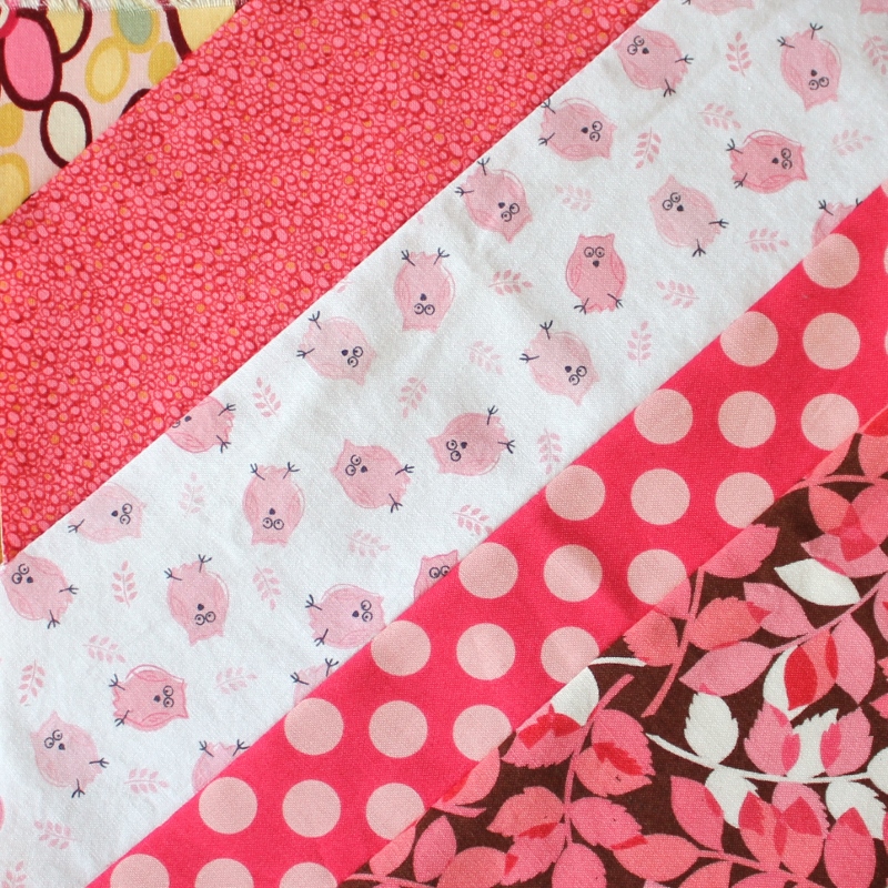 Note the owls (an object to be discussed), a small print, a larger polka dot, a floral print, and another kind of polka dot. Just the variety of prints that I like!