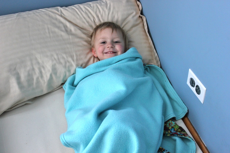 Ellie has started pulling up her blanket all the way to her chin (and sometimes over her head). She wants to be “cozy and warm.” So we thought we’d show Nana how she does that with her blanket ! 🙂