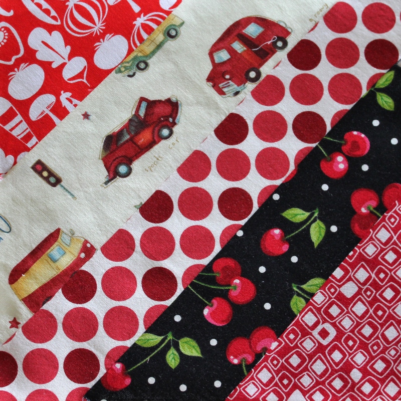 As cute as those vehicles are, I’m not convinced they were the right choice because the whole fabric doesn’t scream”red” to me. Oh well!