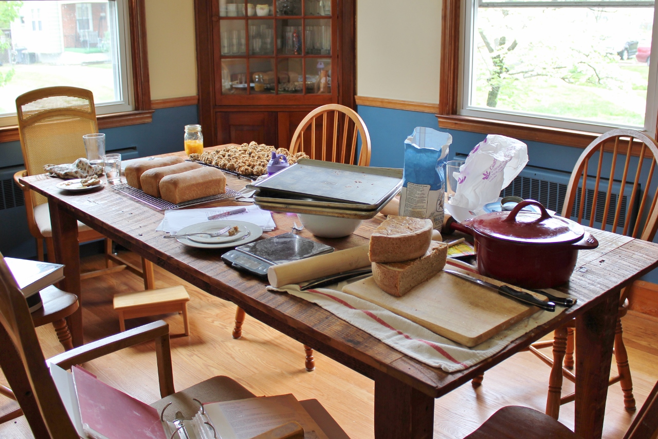 Yesterday was a highly successful Baking Day, as evidenced by the disaster that was our kitchen and dining room at 2:00 in the afternoon.