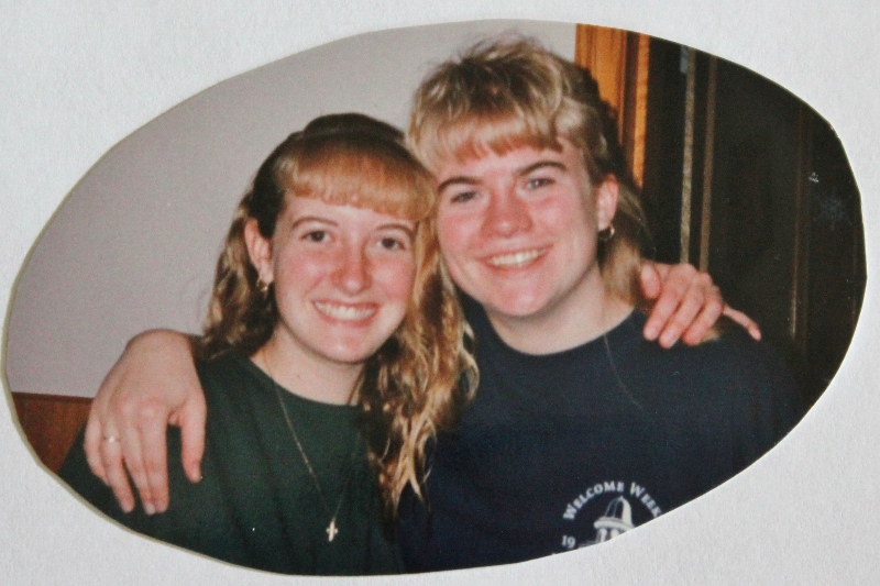 Here we are, during our freshman year. Don’t you just love our bangs? 🙂