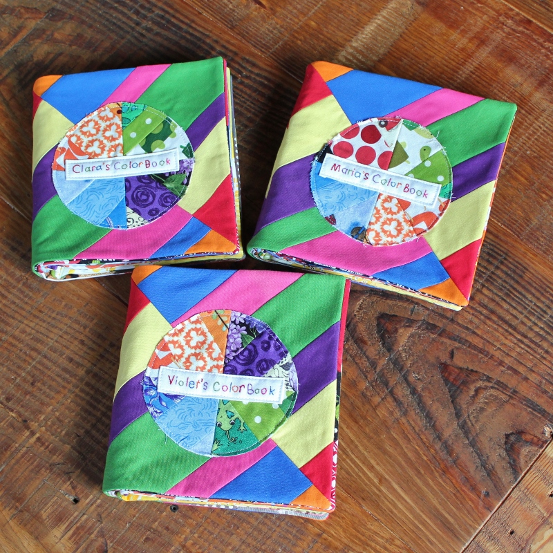 This was indeed a labor of love and it will probably be awhile before I can make myself sew another color book! 🙂 I hope those three little girls love having these books as much as I loved making them for them!
