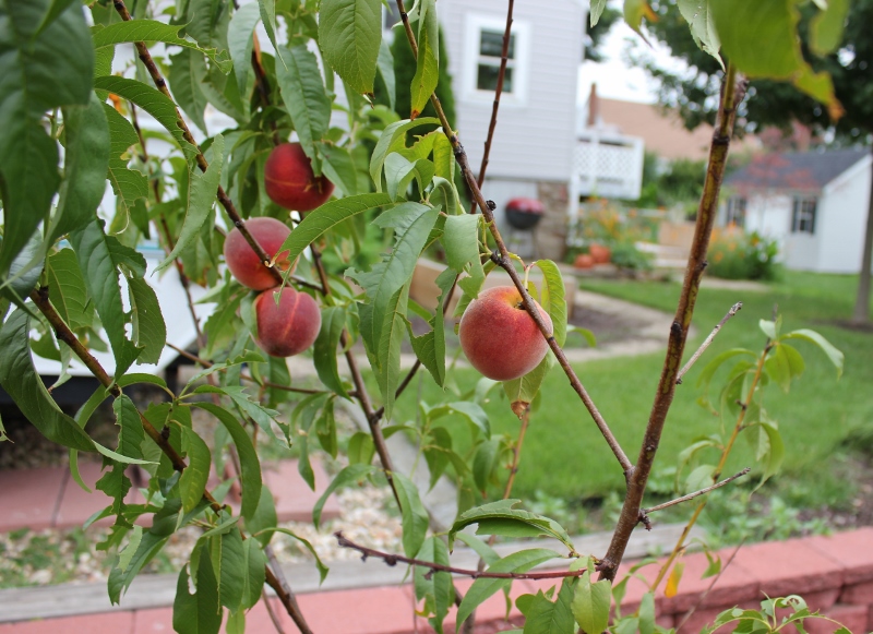 The peach tree came with about six peaches on it and we’ve now eaten all but one of them.